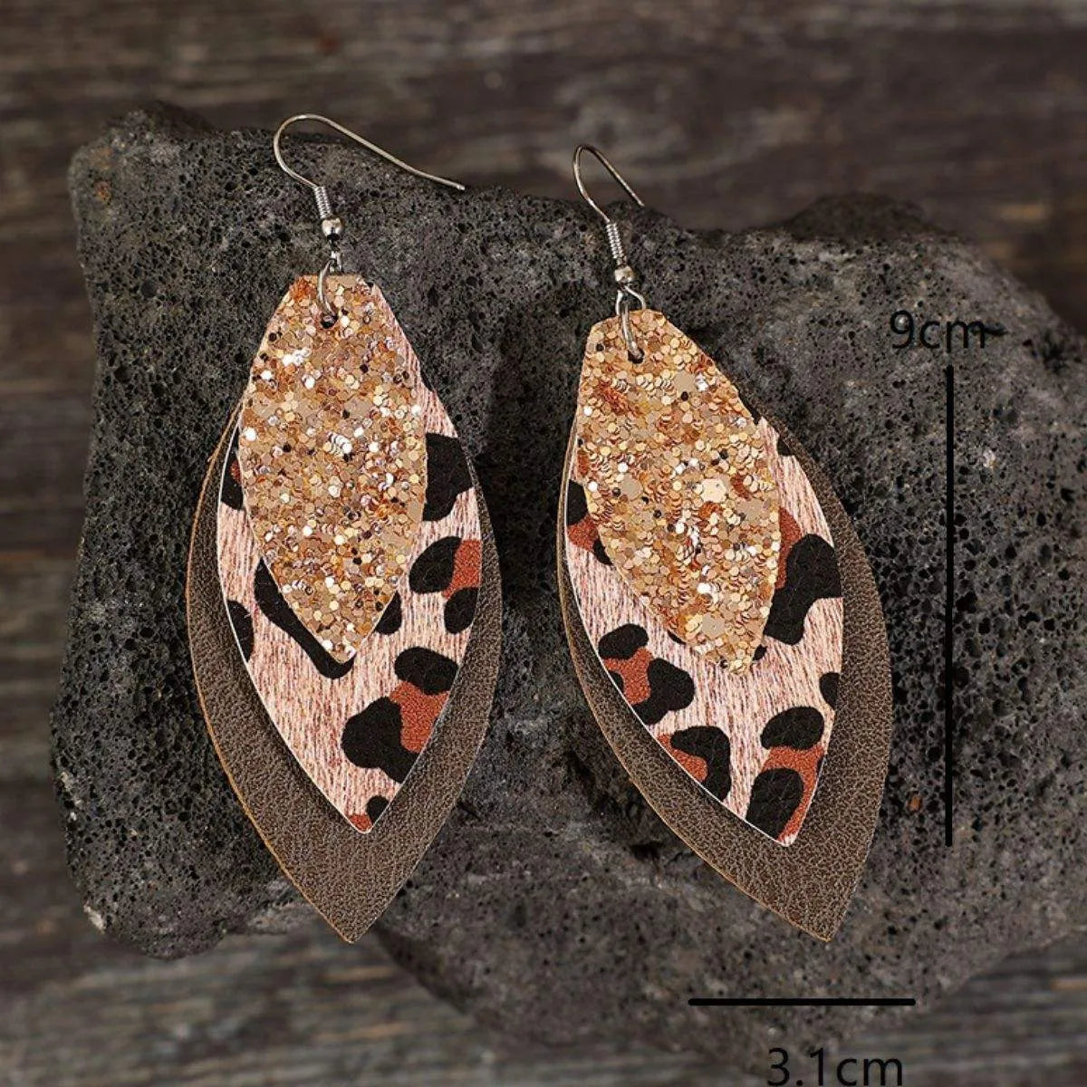 PU Leaf Sequin Dangle Earrings Earrings - Tophatter Daily Deals