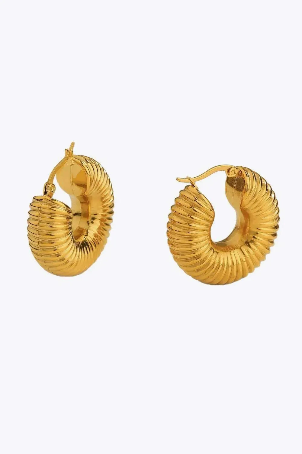 18K Gold-Plated Copper Ribbed Hoop Earrings Earrings - Tophatter Daily Deals
