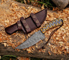 This beautiful everyday carry fixed blade hunting skinner knife feels great in your hand and is suitable for field dressing, Butchering Game, Outdoor Survival, Camping, and any smaller cutting task. Great multipurpose tool for indoors or outdoors. Our high-end Damascus steel custom handmade well-balanced hunting dagger knife is hand-forged Damascus steel; pattern-welded in-house combining 1095 tool steel and 15N20 nickel tool steel. The hardness of this Damascus blade is rated at 55 to 58 HRC on the Rockwell scale which holds the sharpness for a long time. This hand-ground blade has heft and comfortable handling made for practical use. The entire knife is handmade at our facility from forging the Damascus billet to stitching the custom-fitted quality leather sheath with belt loop for easy fastening.