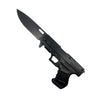 Spring assisted gun knife. 3.75' 3MM Black stainless steel blade. 4.75' black aluminum handle. Includes pocket clip.