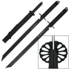 Razor sharp and ready for action, these twin blades are certainly two of a kind. Featuring Japanese inscriptions on their 19 inch blades, each sword shares half of an intricate floral pattern guard so that both can fit in the same high quality nylon sheath. Made from a solid slab of super strong stainless steel, a nylon cord wrap provides a handle with superior grip.