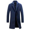 Description: The Men's Cotton Wool Blend Long Windbreaker Coat is crafted for daily use during autumn and winter seasons. Its slim-fit design with a fold-over collar and solid pattern offers a timeless look suited for both casual and business wear. Made from a durable cotton and polyester blend, this long coat ensures comfort and insulation.