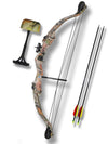 This Camo Right Hand Compound Archery Set is made of a Composite Deflex handle and limb for durability. This Camo Compound Bow set comes complete with arrows and quiver for your archery needs.