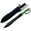 Zombie Killer Machete Full Tang Sawback Bowie with Gut Hook and Sheath! Rip the guts out of every Zombie you encounter! With an excellent grip and bowie style blade, this machete is ready for work wherever needed. Whether you are in the fields, chopping corn stalks or in the jungle cutting a path through a bamboo forest, this black and green two tone blade is perfect to slice through any plants that are in your way (or Zombies).