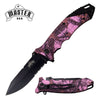 MASTER USA Black Serrated Blade Lady Pink Camo Hunter EDC Spring Assist Knife