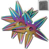 With a unique forked design, these dynamic 5-point throwing stars are sure to hit the spot. Approximately 4 inches across in diameter, the throwing stars feature 1.5 blades that are very sharp and end in piercing, pin point tips. Very thick and sturdy and made from 440 stainless steel, a titanium finish gives the stars a notable look. The package includes 3 individual stars with a FREE black nylon carrying sheath with individual compartments for each star. Overall Diameter: 4 Inches each Blade Length: 1.5 Inches each Points: 5 (forked) Thickness: 2.8 mm Star Material: 440 Stainless Steel Includes: 3 Piece Throwing Star & Free Black Nylon Pouch with Belt Loop