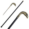 The cane shaft has been constructed from steel with a black glossy finish. Hidden inside of the black metal shaft is a 12” hidden blade made of stainless steel, which can be accessed by unscrewing the handle. The bottom of the cane features a tough rubber gripper. The head of the cane has been constructed from steel with Eagle Head.