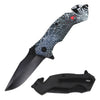 Tactical Rescue Folder Spring Assisted Knife. Featuring 3D Printed Spider design ABS handle. 4.75 Inch Overall closed in length, includes Seat belt cutter, glass breaker and pocket clip.