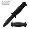 MTech USA 4.75 Inch Closed Spring Assisted Folding Knife. Black Stainless Steel Blade. Black Aluminum Handle. Includes Pocket Clip, Black Spacer and Glass Breaker.