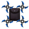 4 Pc Set Black and Blue Finish Four Point Throwing Ninja Stars Shuriken