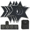 Throwing Stars are the most famous weapons use by the Ninja clan. Now! You can have those same powers in the palm of your hands when wielding this Azan Dark Ninja Throwing Star Set. Made from black anodize steel and equipped with six sharp points and a finger hole in the middle, they will be accurate at your target. The 4 piece throwing star set comes complete with a black nylon pouch for easy accessibility and includes a belt loop. Diameter 2.5 inch.