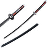 The black wrap over red imitation ray skin and wheel-spoked guard complete the katana’s simple but signature appearance.