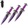 7.5 Inch Deadly Triad of Skulls Dagger Point 3 PC Throwing Knives Set Purple