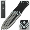 Featuring an aerodynamic design, these premium throwing knives straight out of the smash video game series are sure to always hit the spot! 8.5 inches long overall, the full tang knives are made from high quality stainless steel and feature a 4 inch blade. The two-toned blade style is an awesome touch to the outward appearance with white designs painted on the knife. The set of 3 comes with a folding nylon case.