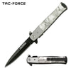 This Tac Force multi-purpose spring assisted stiletto knife works great for any task. It features a sharp and durable 3.5" stainless steel blade. The 5" simulated pearl handle fits comfortably in your hand and offers an excellent grip. Coming in at under 4 ounces, this knife is easy to carry around and won't weigh you down. And with a belt clip attached to the side of the handle, you'll be able to take it wherever you go.