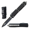 This OTF has a blade that is made from stainless steel in a spear point style with a two-tone finish. The dual action mechanism allows you to deploy and retract the blade with a silver slider. The handle casing made from zinc that is held together with six strong Torx screws. Smooth to the touch this attractive knife just feels good resting in your palm. This knife comes with a glass breaker for an added tactical element. A belt clip is provided. Included is a quick release nylon sheath.