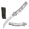 9.75" White Pearl Handle Italian Stiletto Switch Curved Blade Pocket Knife - Tophatter's Guns'N'Weapons Store