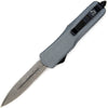 The Free Runner OTF is an automatic knife with a gorgeous checkered finish on its aluminum handle concealing a spear point, Damascus blade. A glass breaker is positioned at the base of the handle and it, along with the hardware and switch, sport a black finish which compliments the gray checkered finish of the handle itself flawlessly. The 3.7-inch Damascus blade has a fuller running down the middle with 7 holes cut out along it to assist with balance and weight distribution. The Free Runner OTF comes with a complimentary black nylon sheath equipped with a belt loop.