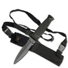 Always a safe bet, this great boot knife is easily concealable and offers a great value. Measuring 3.75 inches, the black anodize 440 stainless steel blade has a piercing dagger point tip and is pinpoint sharp. Both of the double-edged blades have a serrated section if needed to cut rough materials. The contoured handle is molded from a tough rubberized material providing an excellent grip while a short guard ensures your hands do not accidentally slip on the blade, ideal for use in either a wet or dry environment. This knife comes concealable with a durable black nylon sheath with carrying loop. The top of the knife boasts a lanyard hole.