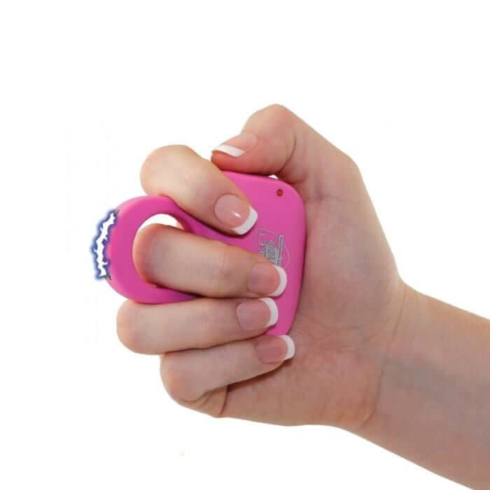 The Sting Ring stun gun was made to fit comfortably in the palm of a woman's hand! The rounded base feels natural in your hand, and when gripped firmly it's nearly impossible for an attacker to take it from you. The Squeeze-N-Stun Technology could save your life by saving you valuable seconds when defending yourself in a panic situation. Rather than having to fumble around looking for the right buttons to push you simply turn off the safety and tighten your grip to activate the unit and stun your attacker!