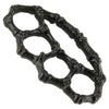 This is the Aluminum Four Finger Bone Black Belt Buckle Paperweight and Knuckle with a black finish. This knuckle comes complete with four finger holes which can fit almost any size fingers. They make a great paper weight or desk item for the office. The exterior is shaped like bones that are linked together; forming around four fingers. Also comes with a belt pin to fit on any of your belts. This is truly a collectors piece. Get it while supply last. These are not legal to purchase in some locations so be sure to check your local laws. Fits adult sizes.