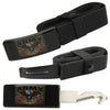 A serrated blade with belt cutter, Flat-Head Screw Driver and Bottle Opener attached to the Knife hidden in Plain Sight with Belt. This is Tactical defense to the extreme. Our Hidden Serrated Belt Knife is one of the most innovative ways to disguise a knife on you without anyone noticing. The US Army Defending Freedom Tactical Hidden Fix Blade Knife Belt features a fast access 440 Stainless Steel construction with a belt cutter for emergency purposes and also sports a flat-head screw driver and a bottle opener. The knife comes equipped on a buckle system which latches onto a 50 inch nylon belt. The belt is also adjustable to fit your size. The knife is then concealed within a hard black cover sheath which takes the curve shape of your waist. The knife handle is concealing over an ABS covering depicting a colorful laser print design of the American Eagle with Army Defending Freedom.