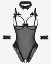 4 Piece Set Sheer Mesh Teddy Bodysuits
