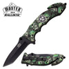 Master USA Ballistic Ballistic Rescue Spring Assisted Knife Green Skull