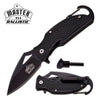 Master USA Ballistic Black Handle Rescue Spring Assist Knife with Carabiner & Fire Starter