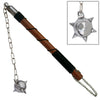 This Battle Field Ancient Steel Mace Ball comes equipped with a stainless steel ball with seven built in spikes which is held by a ring chain. The chain is then attached to the stainless steel tip of the handle. The handle is made of solid natural wood and is partly wrapped with black nylon cord for extra holding power. The hilt of the handle carries a short chain so you can hang it up on the wall. This piece is a definite eye catcher.