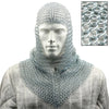 Battle Ready 4 in 1 Interlocking steel rings are linked together for the strongest sword-proof armor coif. Each steel ring is 10mm in diameter of 8 AWG carbon-infused stainless steel alloy. Each ring is forged by authentic metal smiths to produce this genuine Medieval Armor Coif. The pattern of links effectively doubles the steel Gauge armor capacity. It covers the head (top and back), the neck, and the upper chest area. Chain mail armor is a highly valued piece of armor. It was very expensive in medieval Europe because of its rarity and production expense. However, many battle commanders, nobility, and wealthier soldiers were willing to acquire chain mail armor to increase their survivability. It protects the body from swords, spears, knives, impact weapons, and projectiles, while still providing full and equal coverage. This chain mail coif is genuine armor that can be worn for the purpose of protection.