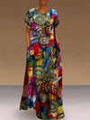 This beautiful long short sleeve abstract print dress features a retro print design and comes with convenient pockets. It is made of synthetic fiber and has a non-stretchy fabric. The silhouette is A-line and it has a pullover closure. The neckline is round and it is available in sizes S, M, L, XL, 2XL, 3XL, 4XL, and 5XL.