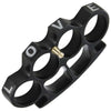 These Black Hearted Lover Not a Fighter Knuckle Weights aren't so bad they really have the best of intentions... With large finger holes these knuckles feature a standard design with a beautiful color coating over it. This novelty knuckle buckle features a standard design with the word LOVE on the end of the knuckles. Screw in the buckle pin and transform this knuckle into a buckle.