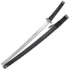 This katana is great for those that need a splash of color and nothing else. The sword features an unsharpened carbon steel blade with black handle wrapped in black cord. The wooden scabbard (saya) is lacquered in black with red splashed.