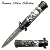Black Stiletto Style Spring Assist Knife - White Pearl Handle - Tophatter's Guns'N'Weapons Store