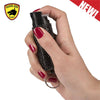 The Bling It On pepper spray from Guard Dog Security comes with a 1/2 oz. canister of pepper spray in a black jeweled hard case with a built in key ring. The pepper spray is made of a 2 millions SHU pepper spray & 18% OC (Oleoresin Capsicum) that has a invisible UV marking dye in it for assailant identification. Plus, it can fire up to 16 feet and has a glow-in-the-dark locking safety actuator to prevent accidental discharges.