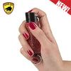 The Bling It On pepper spray from Guard Dog Security comes with a 1/2 oz. canister of pepper spray in a Red jeweled hard case with a built in key ring. The pepper spray is made of a 2 millions SHU pepper spray & 18% OC (Oleoresin Capsicum) that has a invisible UV marking dye in it for assailant identification. Plus, it can fire up to 16 feet and has a glow-in-the-dark locking safety actuator to prevent accidental discharges.