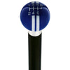 This cane is ready for the racetrack! Add some speed to your life with this deep, dark blue shifter knob with white pearl inset. This cane looks great on brown or black shafts, with silver or brass collars. Customize this cane just like a classic car with an exotic wood shaft then shift into 6th gear with a cane that is reminiscent of a hot rod's shifter knob. Don't let this fast and furious cane pass you by!