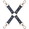 Fixed in a classic cross shape, four short straps connect to the Hogtie's four rugged swivel clips. The clasps, in turn, connect to just about any cuff - as long as there's an O or D-ring involved, you're good to go.