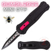 Bumblebee Mini OTF Knife Small Auto Switchblade Dagger - Black w/ Pink