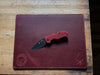 Hand-made by Brandon White of BWeiss Leather, this gorgeous mat features a beautiful shade of dark red leather on the front side that almost perfectly complements our red Spyderco exclusive scales and a simplistic and logical black leather backside along with black stitching. This first run is limited to 25 of each mat and any future runs will be some time away so get one while you can!