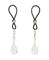 The set comprises of a pair of fully adjustable, non-piercing nipple adornments that are comfortable to wear, and erotically fashionable. The non-tarnishing, nickel-free iron chains are attached to super soft and stretchy silicone loops that provide a comfortable cinch design. The flexible loops measure 2.25”/5.75 cm for the perfect fit and are adorned with beaded adjusters. Smooth clear or black crystal pendants tangle seductively from the jewelry chain and add a delightful tingle sensation.