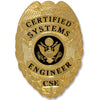 Identify yourself with Maxsell's certified systems engineer badge. This badge features a beautiful shiny finish, masterfully engraved details, and black enamel letters.