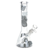 You are totally like, getting very sleepy, man! The Optical Illusion Glow Beaker Bong from Cheech & Chong Glass is made from thick borosilicate glass with a classic beaker-style chamber ready for ragin' rips of smoke. The iconic duo's branded logo is prominent on the neck, which is covered all the way down and across the chamber with hypnotic spiraling optical illusion designs that glow in the dark. Adorning the chamber in a smoky font, you can see the words 'High Rollers,' nearly invisible until exposed in the dark. A slitted downstem diffuser produces rumbling water filtration as you inhale, and is removable for easy cleaning. Each water pipe includes a separate downstem, a 14mm male herb slide and a branded sticker, all packaged in a themed gift box.