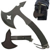 The Handle offers a full black anodize steel construction with a nylon black cord wrap handle. The nylon grip on the handle is makes this axe perfect for throwing or cutting with because it does not slip easily in your hands. The end of the handle offers a lanyard hole with a nylon cord lanyard string which gives you extra security. This Cherokee Sure Stick Axe comes equipped with a black nylon sheath with belt loop for easy accessibility and usage.