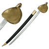 The Cutlass was adopted by the Navy in 1860 it was designed after the French M1833.  This reproduction is constructed of carbon steel with a brass basket style hand guard. The first Naval 1860 Cutlass was reproduced by the Ames Company. This cutlass has a sweeping upturned blade (called a falchion), a single fuller (a fuller is the long groove found on some sword blades, it is there for balance and not as some think for exiting blood). Included is a wooden scabbard wrapped in leather with brass accents.  This style of sword was very popular during the Civil War.