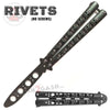 Balisong Trainer w/ RIVETS - Safety practice/training Butterfly Knife with classic 6 hole design, sandwich construction. Perfect for flipping on a budget, capable of learning tricks without injury.NO SCREWS TO FALL OUT, MAINTENCE FREE! Available in Black, Blue, Gold, Tan, Chrome or Rainbow.