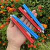 CNC Cutting High-End Sword Head Butterfly Knife Balisong Trainer With Red Blue Color Aluminum Alloy Handle