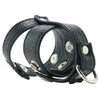 Looping over the shaft and securing with snaps, the Ring's main strap holds tight to help maintain erection. Snapping into place at the base of the scrotum, athick 1' (5cm) band tugs the testicles away from the body while a third gently splits the balls. Add extra weight to the stretcher area using an attached ring.
