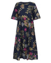 Blue Floral Cotton Dress Women Half Sleeve O-neck Floral Print Patchwork Women Colorful Maxi Dress